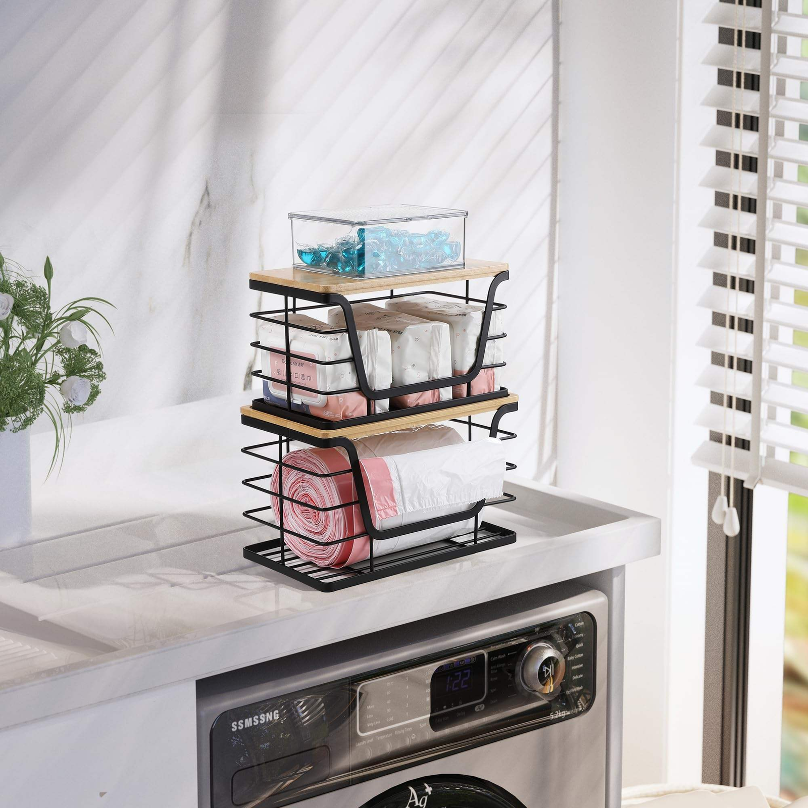 Looks great in my laundry room. I stacked the bins and use the lids to hold small towels. The dispenser works great too! – Rehan A.